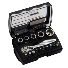 16-Piece Mini Ratchet & Socket Set - 1/4" Drive RatchetThis mini ratchet and socket set is the perfect option for removing fasteners in hard-to-reach places. The tool case has a foam tray for ease of carrying and storage.Includes: (4) SAE Sockets (1/4, 5/16, 3/8, and 1/2-in.) (1) 1/4-in. drive ratchet...