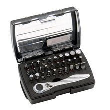 31-Piece Mini Ratchet & Bit Set - 1/4" Drive RatchetThis mini ratchet and bit set is the perfect tool for removing screwdriver bits in hard-to-reach places. The tool case has a foam tray for ease of carrying and storage.Includes: (1) bit handle (30) screw bits