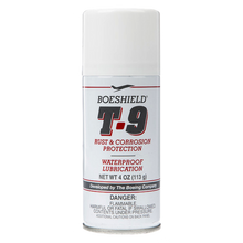 Boeshield T-9 was developed and licensed by global aerospace leader, The Boeing Company, to fill a need for high-performance, long-term metal protection and lubrication. T-9's rust preventative spray uses a unique formulation of solvent carrier and paraffin wax coating engineered to penetrate crevices deeply, displace moisture, dissolve minor corrosion and leave a clean, waxy coating with lasting durability-without using Teflon, silicone, fluorocarbons, MEK or acetone. Whether it be automotive, bicycle, industrial, lawn and garden, marine, RV or tools, T-9 continues to be the best option for rust prevention and waterproof lubrication.