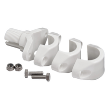 This is a generic and easy to use rail mount. It includes screws/nuts and has cable feed on the side. 22-30mm, 1" 14TPI male, white